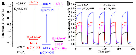 - Yang, Q.; Chen, C.; Zhang, Q.; Zhang, Z.; Fang, X. Molecular engineering of supramolecular precursor to modulate g-C3N4 for boosting photocatalytic hydrogen evolution. Carbon 2020, 164, 337–348. [Google Scholar] [CrossRef]