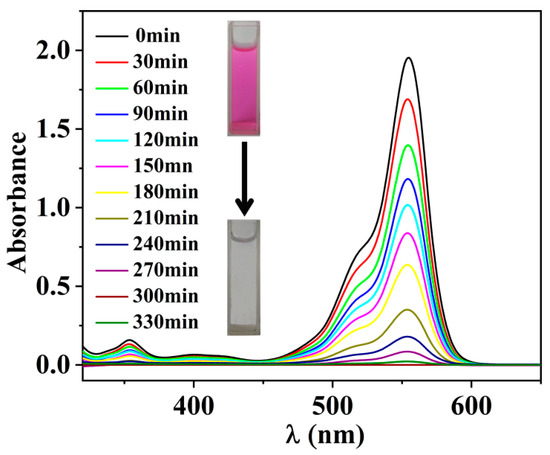 4.2. Study on Photocatalytic Degradation of Dyes
