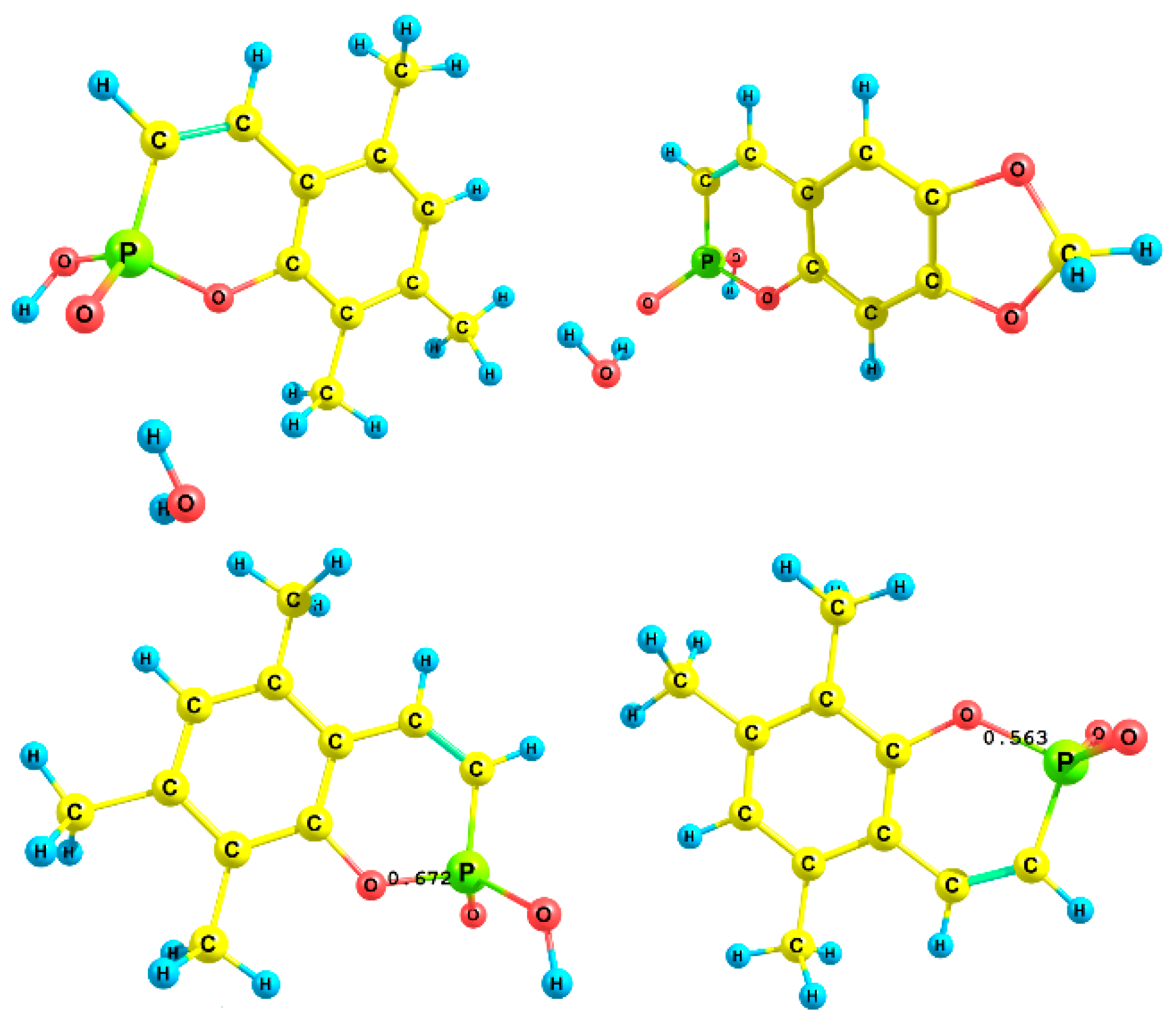 - Sadykova, Y.M.; Sadikova, L.M.; Badrtdinova, A.R.; Dobrynin, A.B.; Burilov, A.R.; Pudovik, M.A. Condensation of 2-Ethoxyvinylphosphonic Acid Dichloroanhydride with 2,3,5-Trimethylphenol. Novel Method for Preparation of Phosphacoumarins. Phosphorus Sulfur Silicon Relat. Elem. 2015, 190, 2267–2272. [Google Scholar] [CrossRef]