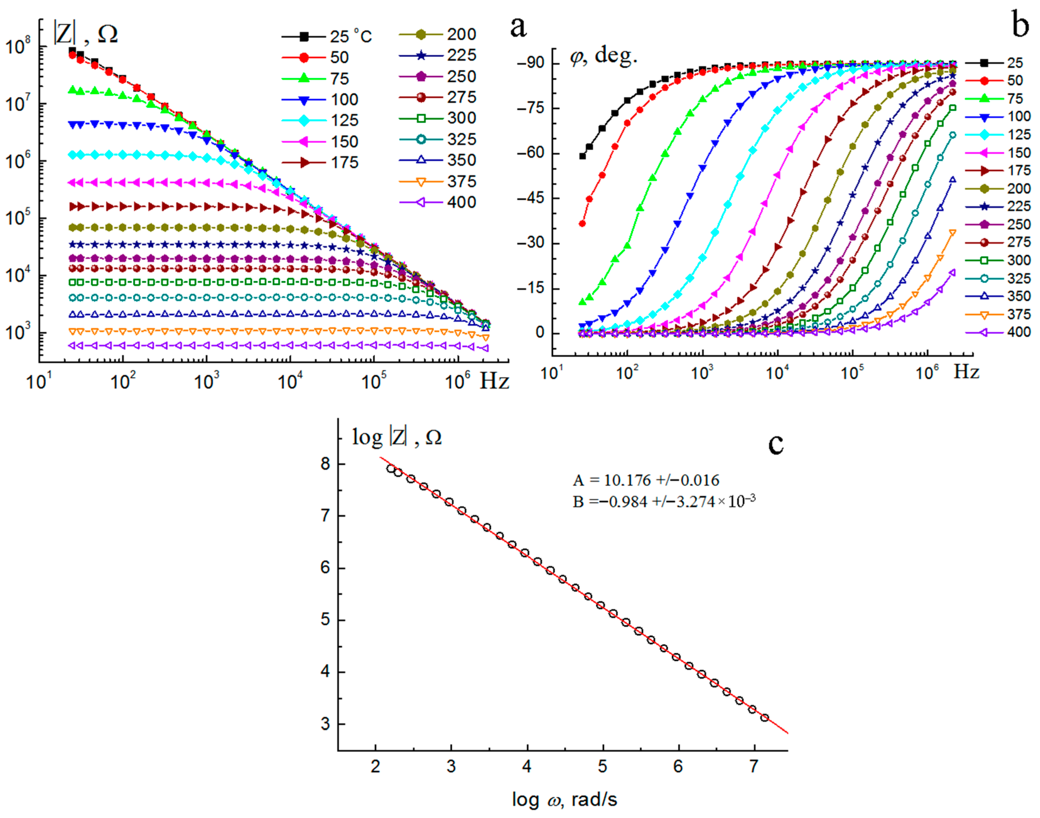 - Barsoukov, E.; Macdonald, J.R. Impedance Spectroscopy: Theory, Experiment and Application; Wiley-Interscience: Hoboken, NJ, USA, 2005; 606p. [Google Scholar]