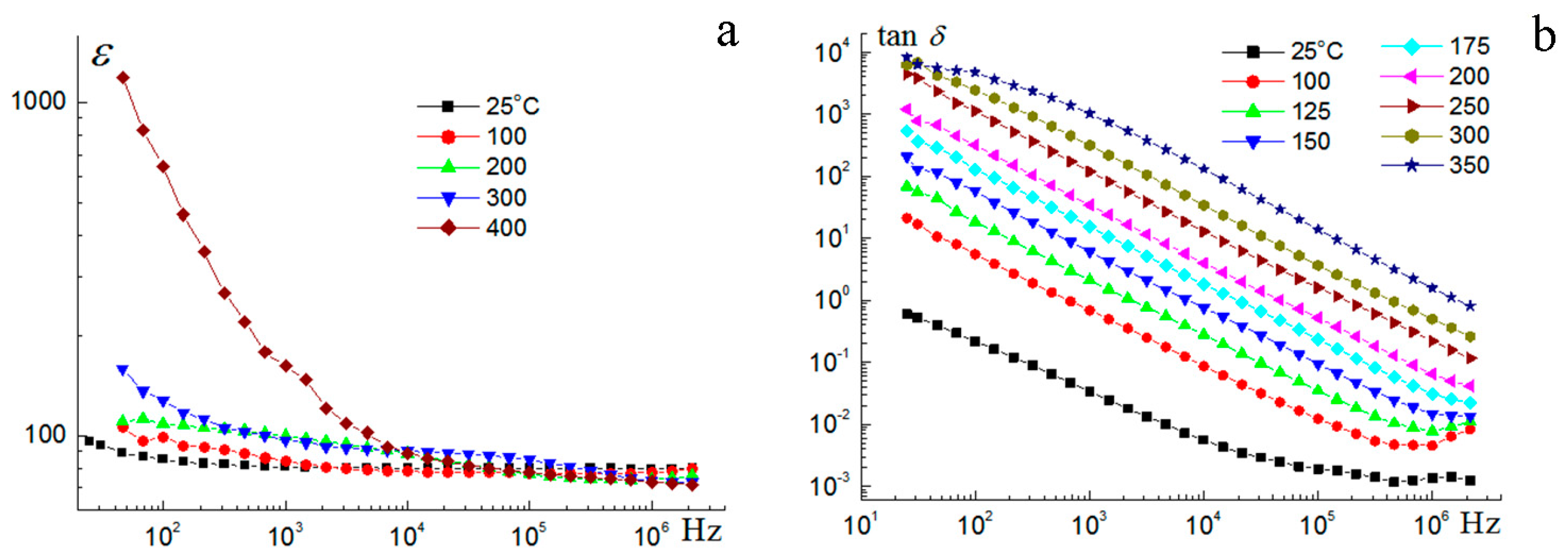 - Rychkova, L.V.; Sekushin, N.A.; Nekipelov, S.V.; Makeev, B.A.; Fedorova, A.V.; Korolev, R.I.; Zhuk, N.A. Dielectric and magnetic properties, NEXAFS spectroscopy of Co-doped of multicomponent bismuth niobate pyrochlore. Ceram. Int. 2021, 47, 6691–6698. [Google Scholar] [CrossRef]