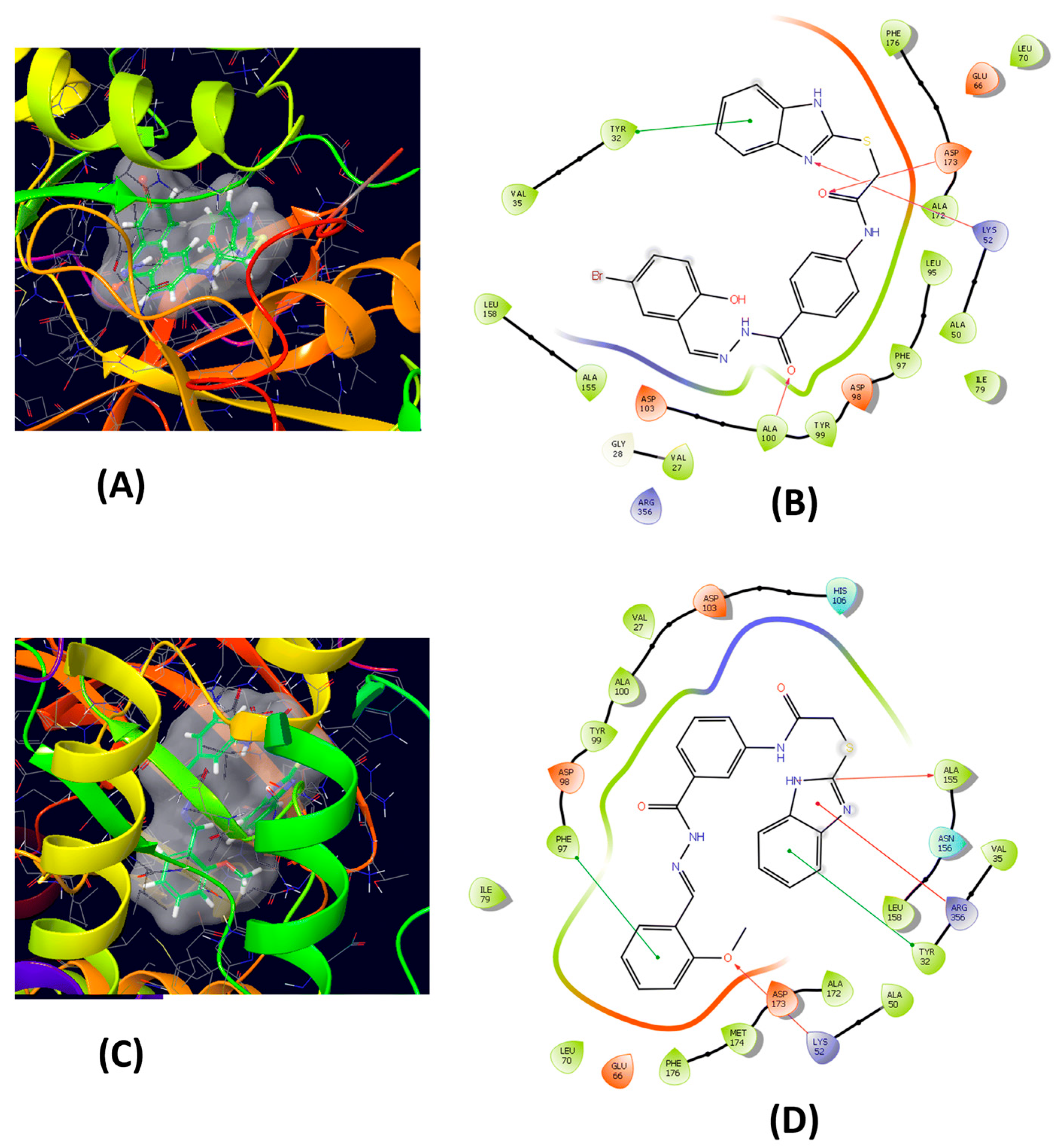 - Alheety, N.F.; Al-Kubaisi, A.A.; Mukhlif, M.Y.; Alheety, M.A.; Besbes, R. Structure-Based Design and ADME Screening of Benzimidazole Derivatives as Potential Therapeutics for Human Metapneumovirus (HMPV) (ICSEM 2025). Macromol. Symp. 2025, e70159. [Google Scholar] [CrossRef]