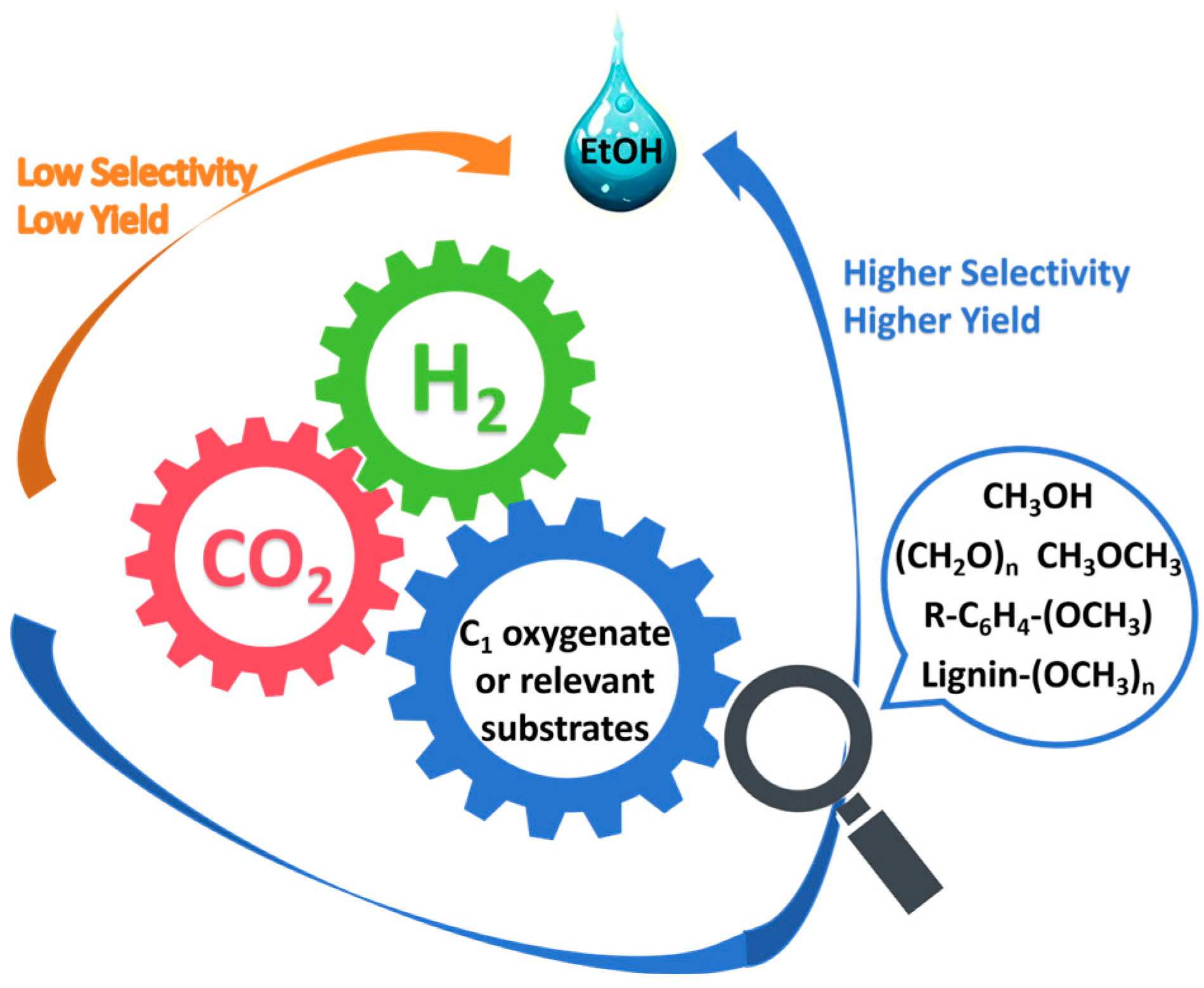 - Zhang, J.J.; Qian, Q.L.; Wang, Y.; Asare Bediako, B.B.; Yan, J.; Han, B.X. Synthesis of ethanol from aryl methyl ether/lignin, CO2 and H2. Chem. Sci. 2019, 10, 10640–10646. [Google Scholar] [CrossRef]