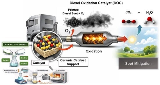 Maximum oxidation temperature (TMAX) of soot obtained from TG/DTG profiles for the Ce–Mn–50 mixed oxide with different promoters (10 wt.%), and the corresponding actual promoter content (P) determined by EDXRF analysis.