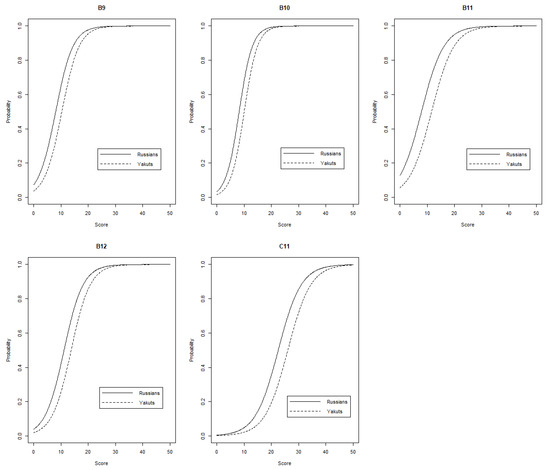 The test data for Yakuts and Russians is repeated below in Table 3, but this time without items that displayed DIF (B9–B12, C11).