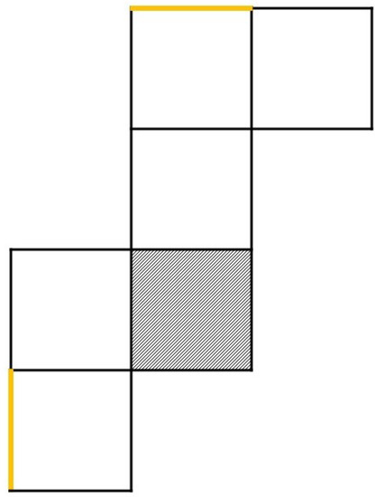 The main motivation for this paper stems from research on so called mental paper folding [9]. In mental paper folding, participants are shown a two-dimensional stimulus of a net of six connected squares as shown in Figure 1. Two lines on the outer parts of the net are highlighted in yellow. Participants are instructed to imagine folding the net into a cube as if they were folding a sheet of paper and indicate whether the two highlighted lines do overlap in the imagined cube or not.