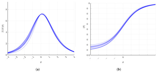22] by using measurement models, such as the Rasch model, the two-parameter logistic (2PL) model, and the three-parameter logistic (3PL) model. In this article, we focus on the unidimensional 3PL IRT model for dichotomous items (i.e., correct/incorrect), which expresses the probability of endorsing an item as a function of the underlying ability and a set of item parameters representing the item properties through an S-shaped curve called the item characteristic function (ICF). The 3PL model has an ICF expressed by the following formula: