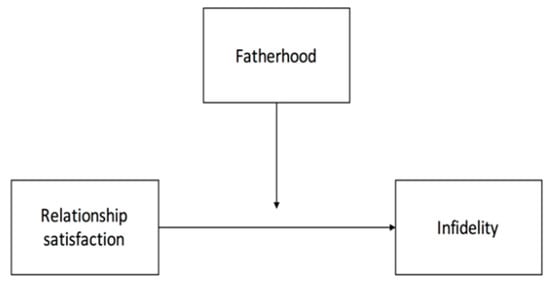 Theoretical moderation model of the influence of fatherhood on the association between relationship satisfaction and infidelity.