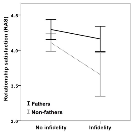 Moderation effect of fatherhood on the association between relationship satisfaction and infidelity.