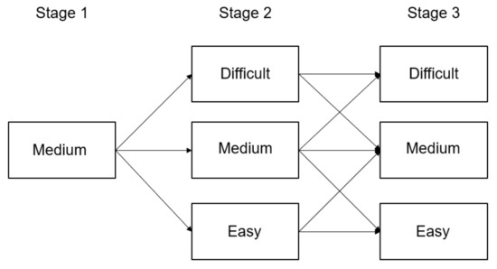 - Yan, D.; Lewis, C.; Von Davier, A.A. (Eds.) A Tree-Based Approach for Multistage Testing. In Computerized Multistage Testing: Theory and Applications; CRC Press: Boca Raton, FL, USA, 2014; pp. 169–188. [Google Scholar]