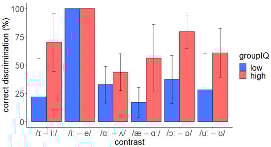 Discrimination of the English vowel contrasts by the low and the high IQ groups.