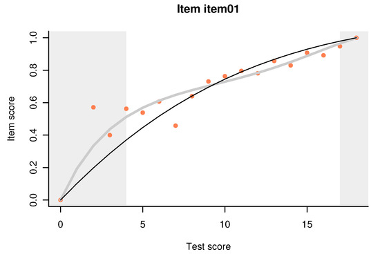- Chalmers, R.P. mirt: A Multidimensional Item Response Theory Package for the R Environment. J. Stat. Softw. 2012, 48, 1–29. [Google Scholar] [CrossRef]