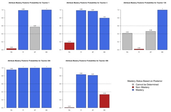 The diagnosing teachers’ multiplicative reasoning (DTMR) assessment is a diagnostic assessment developed by [] to assess teachers’ understanding of the components needed to reason about fraction arithmetic. The assessment was primarily designed for teachers who teach grades 5–7, as these grades are formative for teaching students the fundamentals of arithmetic. The goal of the DTMR is to provide teachers with diagnostic feedback with respect to the attributes measured by the assessment, with the hope that the feedback will help teachers to identify components of reasoning about fraction arithmetic that they have or have not fully mastered.