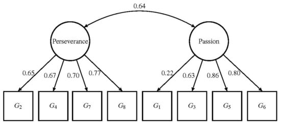 The Grit-S Scale [8] is a shorter version of the original psychometric instrument (i.e., Grit-O Scale; 12 items) comprising 8 items designed to assess an individual’s level of grit. This assessment instrument contains four items for perseverance (e.g., I am a hard worker) and four for passion (e.g., My interests change from year to year) with responses ranging from 1 (Not like me at all) to 5 (Very much like me). Overall, the Grit-S Scale stands as an instrument that provides reliable scores for measuring an individual’s inclination to sustain interest in and effort toward long-term goals and making valid inferences based on them [47,48,49].