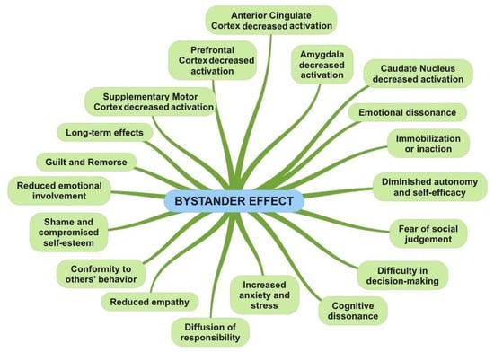 From a behavioral perspective, both the bystander effect and freezing involve immobility as a behavioral response, but they differ regarding decision-making difficulty, cognitive dissonance, the role of the diffusion of responsibility, conformity to others’ behavior, and emotional involvement [75,76,77].
