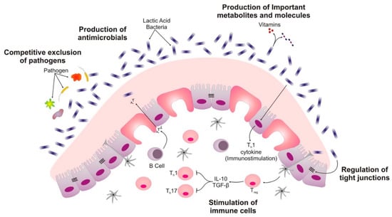 - Probiotics down-regulate pro-inflammatory cytokine production, prevent apoptosis, and suppress the proliferation of T cells thus preventing various inflammatory conditions [86].