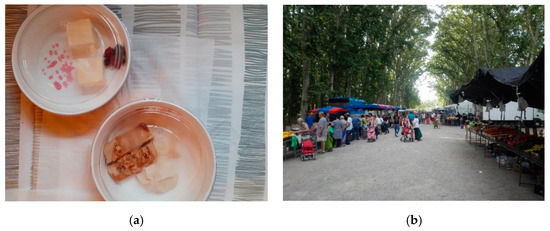 (a) Takeaway desserts and (b) a farmers’ market in the city of Girona.