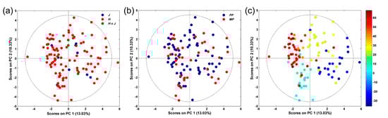 - Trygg, J.; Wold, S. Orthogonal projections to latent structures (O-PLS). J. Chemom. 2002, 16, 119–128. [Google Scholar] [CrossRef]