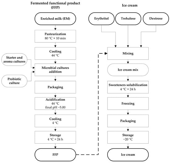 Figure 2. Flow chart of the manufacturing process of the fermented functional product (FFP) and ice cream.