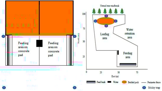 - Meyer, J.A.; Petersen, J.J. Characterization and Seasonal Distribution of Breeding Sites of Stable Flies and House Flies (Diptera: Muscidae) on Eastern Nebraska Feedlots and Dairies1. J. Econ. Entomol. 1983, 76, 103–108. [Google Scholar] [CrossRef] [PubMed]