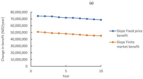 The increments in undiscounted industry benefits for the two market scenarios simulated are presented in Figure 2a.