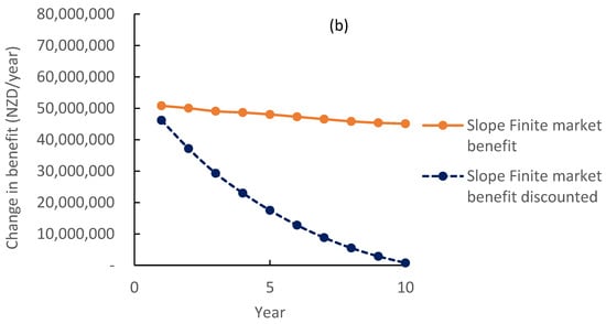 Thirdly, as the flow of benefits emerge in the future, such future benefits needed to be discounted to properly count them on a common timeframe. To achieve this, a discount rate of 10%/year was used as suggested by Sheppard and Malcolm []. Table 4 compares the raw benefit and the discounted benefit series.