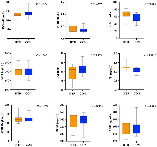 p = 0.006) for average daily gains in the CBD group was observed. Serum cortisol concentrations were significantly lower in CBD-supplemented calves at Day 0 and +2 days, compared to the CON group, indicating a transient anti-stress effect (