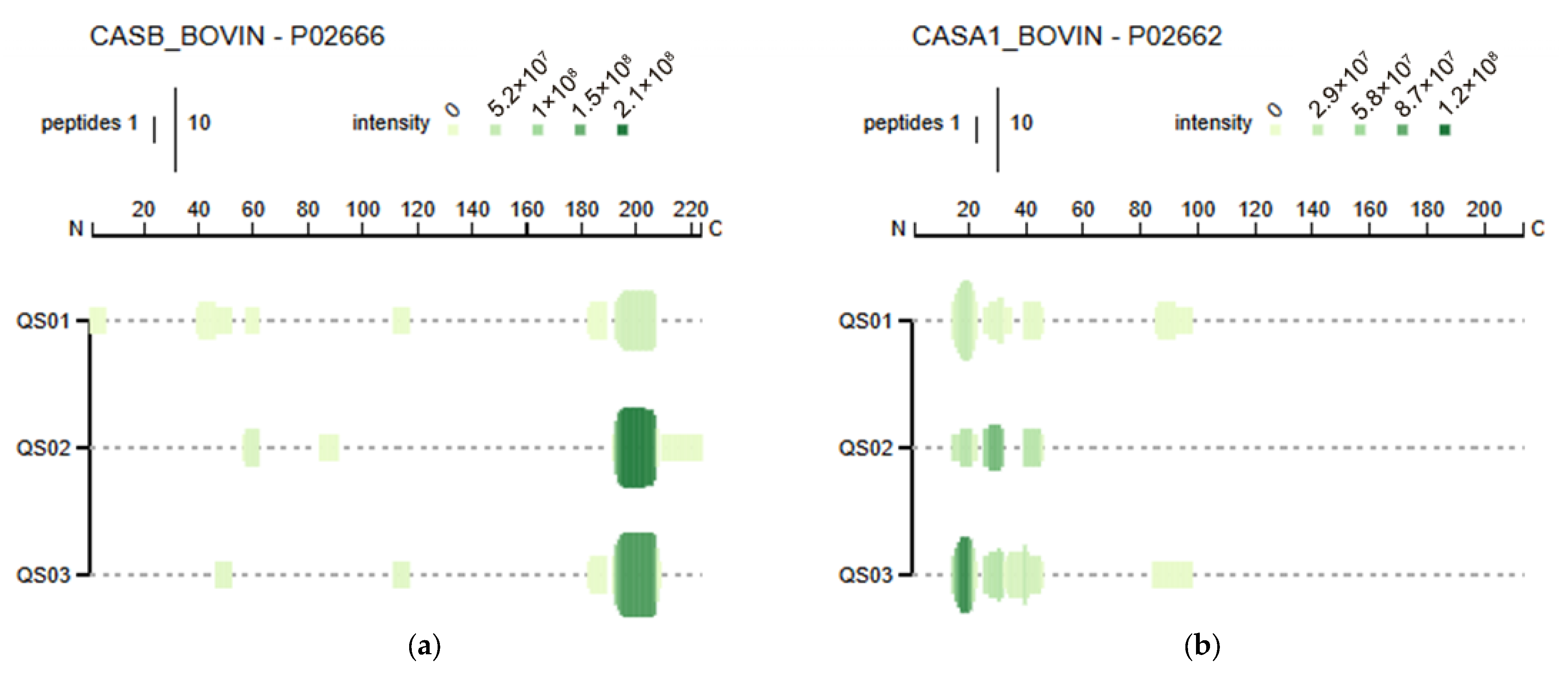 - Silva, R.A.; Bezerra, V.S.; Pimentel, M.D.C.B.; Porto, A.L.F.; Cavalcanti, M.T.H.; Filho, J.L.L. Proteomic and Peptidomic Profiling of Brazilian Artisanal “Coalho” Cheese. J. Sci. Food Agric. 2016, 96, 4337–4344. [Google Scholar] [CrossRef] [PubMed]
