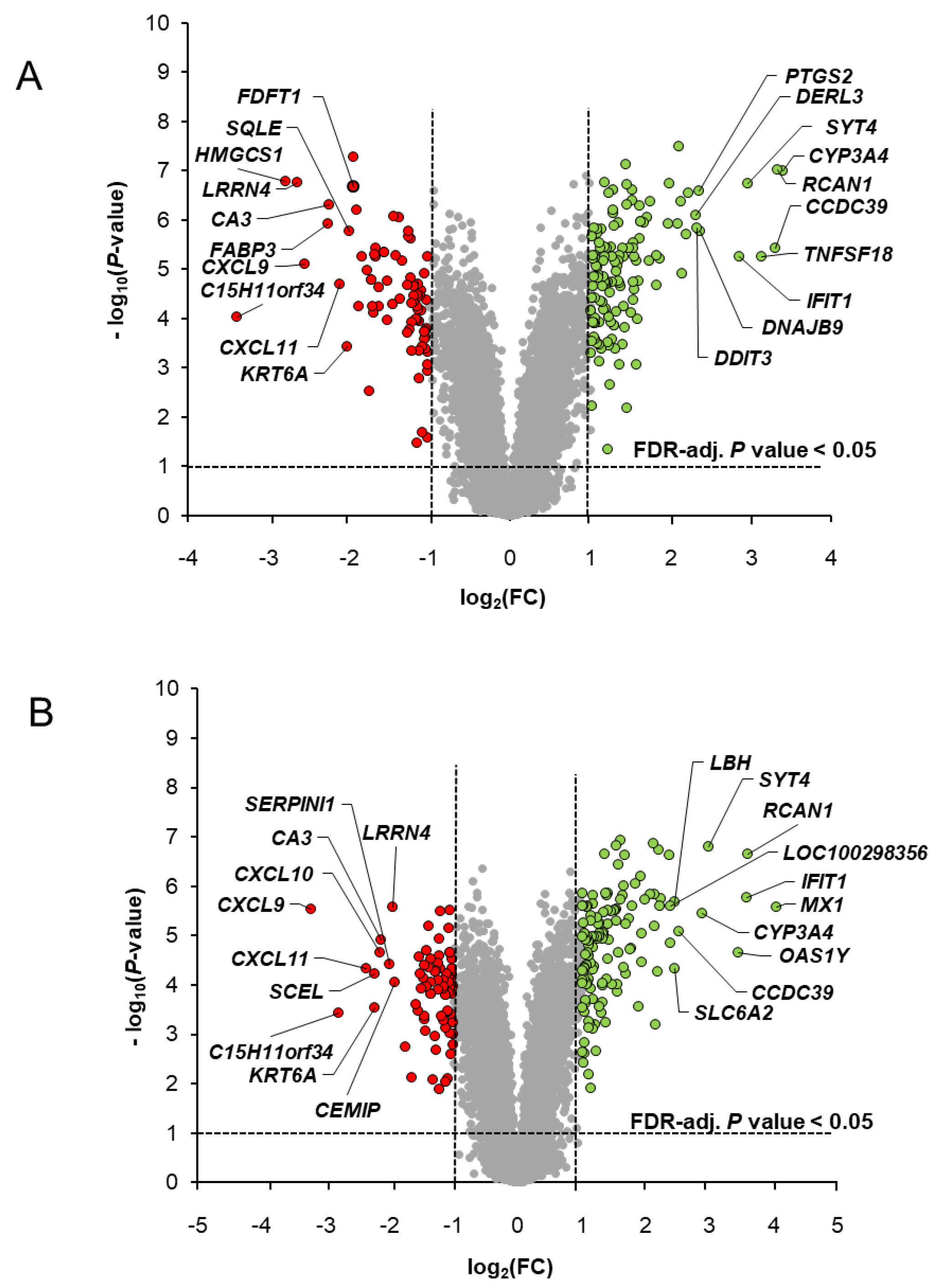 p-values were adjusted for the number of genes tested using Benjamini and Hochberg’s false discovery rate (FDR) to account for multiple comparisons. Differentially expressed transcripts were filtered based on FC > 2.0 or <−2.0 and FDR-adjusted