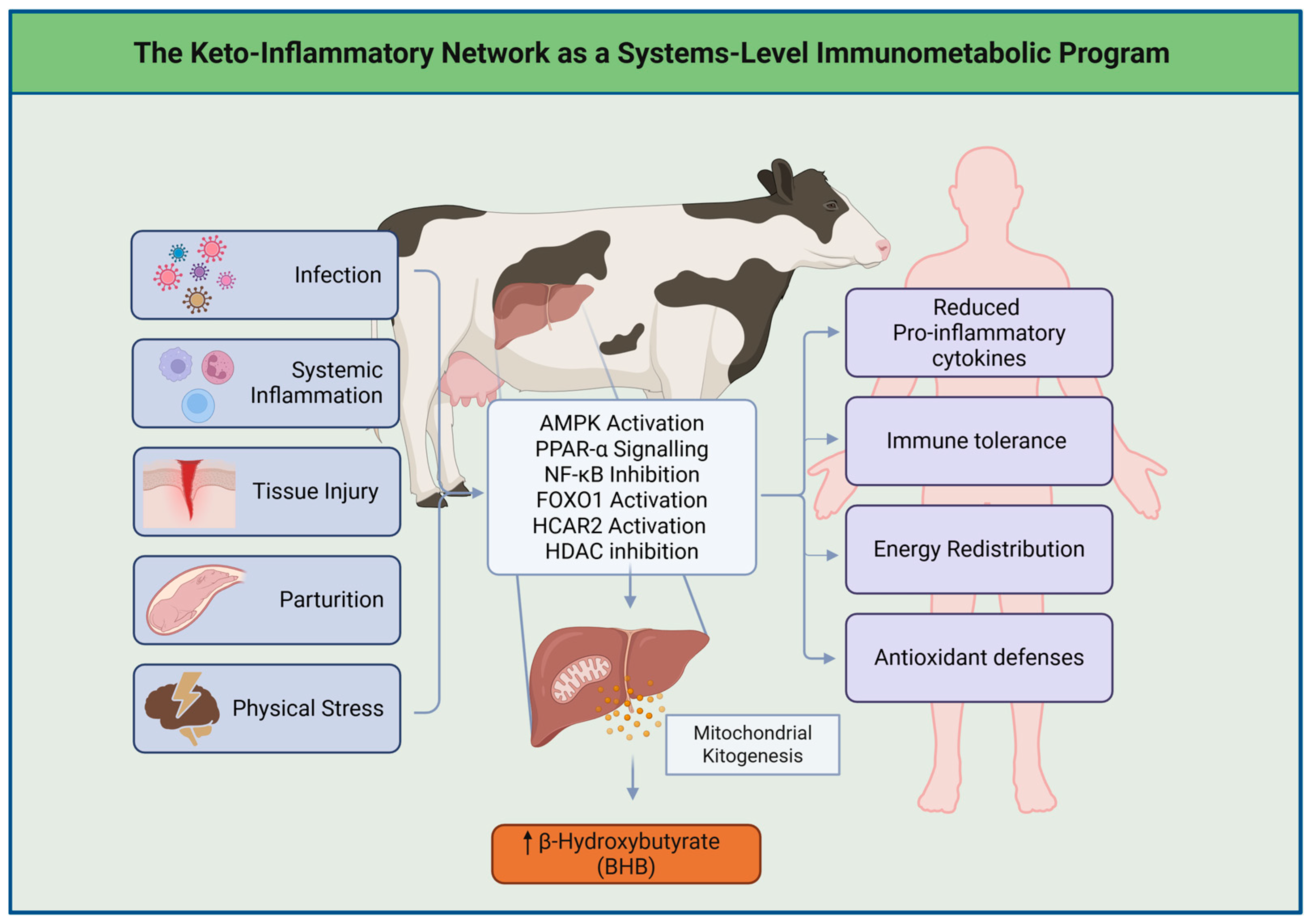 Ametaj, B.N. The Keto–Inflammatory Network: From Systems Biology to Biological Code. Dairy 2026, 7, 19. https://doi.org/10.3390/dairy7010019