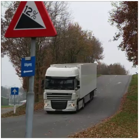 To validate the behavior and performance of the EMS with preview on the road, measurements are performed on a test track with elevation changes, with a DAF XF 105 heavy-duty hybrid electric vehicle. In this section, the vehicle (Section 2.1), the test track (Section 2.2) and implementation details of the EMS (Section 2.3) are described.