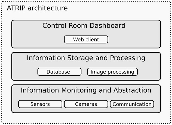 As previously mentioned, the ATRIP architecture is divided into three main components: (i) information monitoring and abstraction; (ii) information storage and processing; and (iii) control room dashboard, as seen in Figure 1.