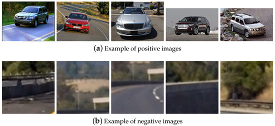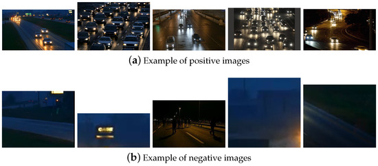 For the low luminosity environments, 962 images were used, including 193 positive and 769 negative images, as depicted in Figure 3. Therefore, the amount of images of both environments sum up to 6652. All the images of the dataset were handled manually by the authors of this work, selecting only the relevant objective in each image, i.e., tracing cars in the images to improve the accuracy of the classifier.