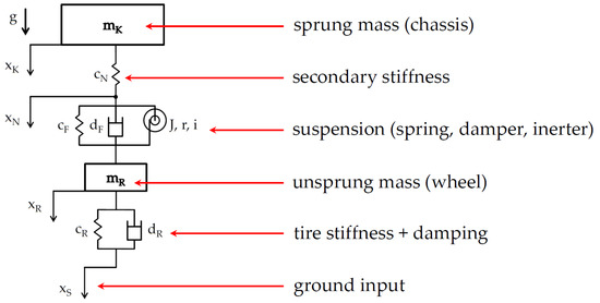 r, i), which are connected in parallel. Coupled to the suspension is the unsprung mass (