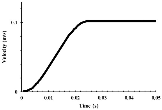 Other parameters that have a significant influence on failure occurs during the simulation cannot be extracted through the experimental tests. Therefore, their values were obtained through the trial and error process which are shown in Table 2. These parameters are the maximum strain for the fibers in tensile (DFAILT), compression (DFAILC) mode, and the maximum strain for the matrix for the tensile/compression (DFAILM) and shear (DFAILS) modes. The load was applied as a quasi-static with a maximum velocity of 0.1 mm/s. Figure 2 shows the velocity profile implemented in our simulation over time. Three different contacts were used for this simulation include NODE_TO_SURFACE between the loading plate and tube, AUTOMATIC_SINGLE_SURFACE between all components, and ERODING_SINGLE_SURFACE to prevent the penetration of the composite layers. Because the explicit solver was selected in our analysis, the mass scaling option was also used to improve the simulation time.