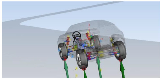 A Dassault Systèmes SimPack multi-body simulation model of the dynamics of the Range Rover Velar vehicle developed by JLR was used in the study, see Figure 2. This model executed on 8 cores of a dual Xeon CPU 16-core Concurrent iHawk (Duluth, GA, USA) hardware platform.