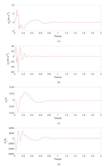 Figure 5 shows the time-domain transient response of , , , and under smooth pulse excitation. The stabilization time of each response adjustment of the system is within 1 s. Due to the addition of TPMLM, small-scale oscillations appear in the initial stage of impulsive excitation, especially the sprung mass acceleration , but the response amplitude does not increase significantly.