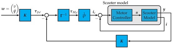 The external torques acting on the platform system and on the wheels mainly consist of the torques produced by the n-th motor of the scooter. Taking the dynamic properties of the motor into account [36], the full dynamic model reads