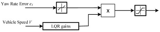 Linear Quadratic Regulators (LQR) are optimal controllers that balance the tracking performance of the state variables (minimization of the overall error of the yaw rate) with the actuation (commanded asymmetrical torque on the wheels). The simplest LQR controllers minimize the integral of a weighted sum of the squared error and the square of the actuation. The gains for these types of controllers can be obtained by solving the corresponding Ricatti equation [26]. LQR is an optimal controller and the proper selection of the function to minimize provides very effective results. On the downside, they are very sensitive to mismodelling the vehicle or perturbations and are usually applied to linear systems. Linear Quadratic Gaussian (LQG) is a variant of LQR that also includes disturbances (e.g., side winds) modelled as Gaussian noise. If properly tuned, the effect of disturbances can be minimized. Table 3 shows the literature related to optimal controllers (both LQR and LQG) for DYC [27,28,29,30,31,32,33,34,35].
