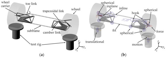 - Schütte, J.; Sextro, W.; Kohl, S. Halbachsprüfstand Zur Kinematischen, Elastokinematischen Und Dynamischen Charakterisierung von Radaufhängungen. Fachtag. Mechatronik 2019, 1, 103–108. [Google Scholar]