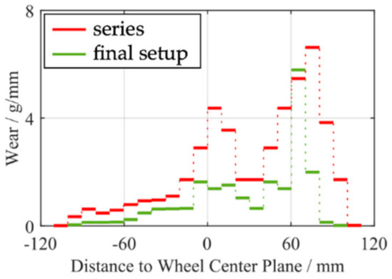 - Schütte, J.; Sextro, W. Model-Based Investigation of the Influence of Wheel Suspension Characteristics on Tire Wear. In Proceedings of the Advances in Dynamics of Vehicles on Roads and Tracks; Klomp, M., Bruzelius, F., Nielsen, J., Hillemyr, A., Eds.; Springer International Publishing: Cham, Switzerland, 2020; pp. 1760–1770. [Google Scholar]