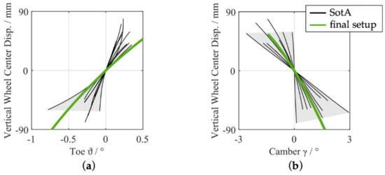- Hoffmann, J. Potentiale Einer Aktiven Achskinematik zur Optimierung des Fahrverhaltens; Schriftenreihe des Instituts für Fahrzeugtechnik, TU Braunschweig; Shaker Verlag: Aachen, Germany, 2016; ISBN 978-3-8440-4554-3. [Google Scholar]
