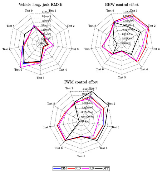 TWSC stands for the control effort of both the IWMs’ and the brake-by-wire-system’s actuators on each corner. With the IACA parameter, a statement about the actuator wear is possible, but any specification of a critical value was not the aim of the authors in this study and is therefore be left to the scope of other publications.