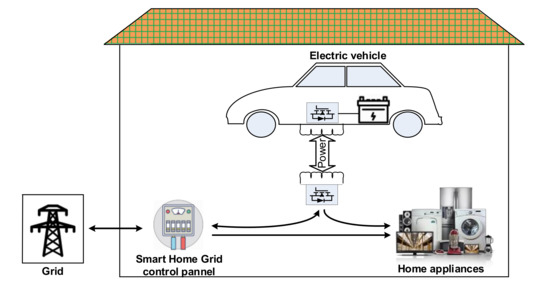 - Monteiro, V.; Exposto, B.; Ferreira, J.C.; Afonso, J.L. Improved Vehicle-to-Home (iV2H) Operation Mode: Experimental Analysis of the Electric Vehicle as Off-Line UPS. IEEE Trans. Smart Grid 2017, 8, 2702–2711. [Google Scholar] [CrossRef]