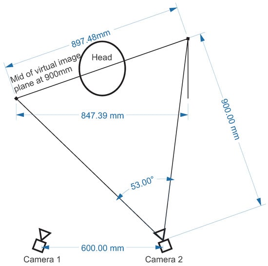 Simplified top view of the camera setup. Two infrared cameras are oriented in the direction of the head.