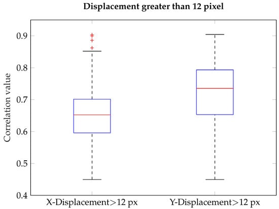 Distribution of correlation values for displacements greater 12 pixel for the original resolution (382 × 288 pixel).