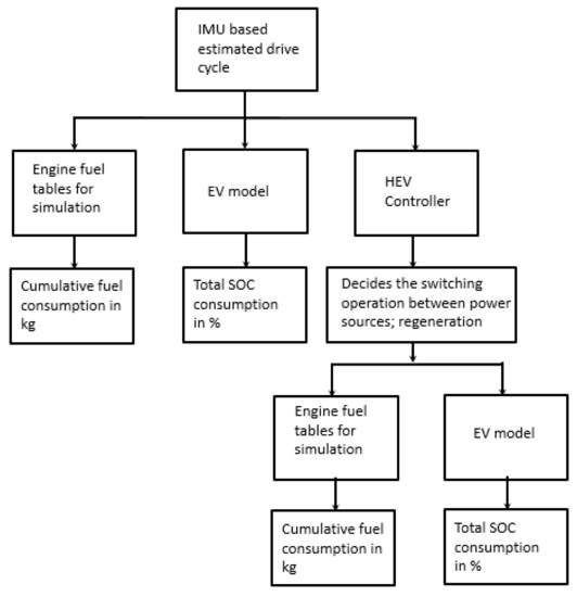 It is concluded from the article that drive cycle estimation is possible with the help of IMU sensors. If an appropriate drive cycle is known then accurate energy consumption can be estimated with the described method in this article for engine, EV, and HEVs. The parallel hybrid converted scooter is equipped with a hybrid controller and the HEV control strategy is found useful for urban roads. The paper cites the estimation of drive cycle using IMU which helped to program the HEV controller. From the results, it is proven that HEV technology has the capability of better energy management and is found very efficient on congestive roads. Hence, HEV scooters play an important role in the improvement of fuel economy and lowering the carbon pollutants from the vehicle. Moreover, range extension is possible with the given configuration, and further can be increased with higher battery capacity. The energy consumption results highlight the hybrid benefits by lowering the tailpipe emissions and fuel consumption.