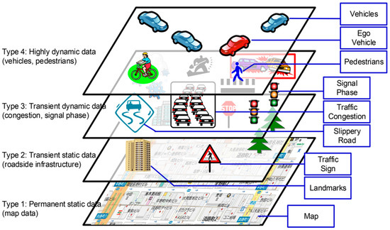 - Layer 2 (quasi-static): transient static data (traffic signs, buildings and roadside infrastructure);