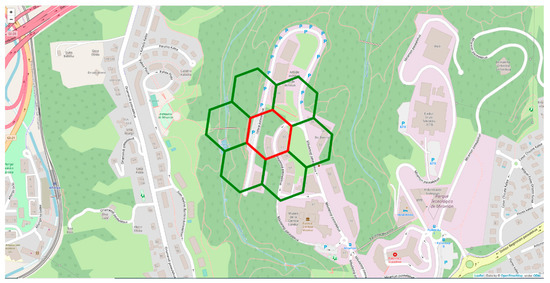 In the tests performed in Section 5, the resolution for both the dynamic and static layers was set to resolution = 10 as seen in the previous figure; this sets the average hexagon area to 15,000 m2.