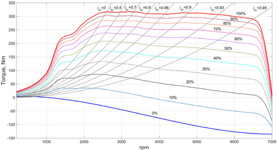 22], the 3.2 FSI engine’s torque curve, which was synthesized on the manufacturer’s data with a maximum value of 330 Nm, was used. In contrast, this study’s engine torque curve, with a peak value of 317 Nm, is based on the accurate characteristic provided by the bench tests [